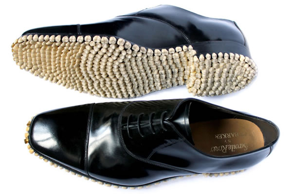 Se trata de unos zapatos con suela de dientes en lugar de la clásica goma.