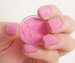 8-Pon el polvo sobre el esmalte fresco con mucho cuidado, aplica suficiente y espera hasta que seque y luego sacude la uña para quitar lo que no pegó, es importante que pegue perfectamente.